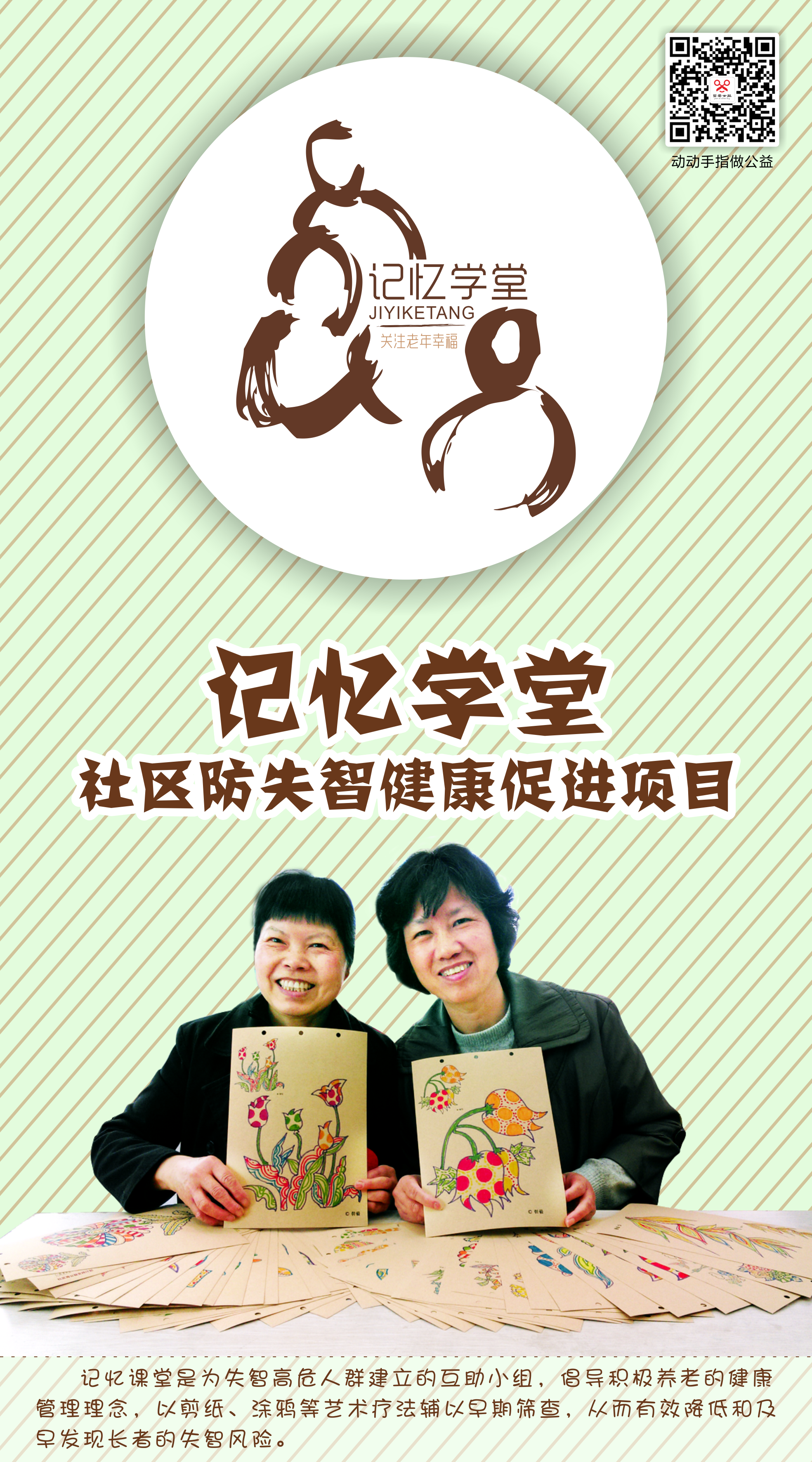 上海剪愛公益發(fā)展中心是一家致力于認(rèn)知癥預(yù)防及早期干預(yù)的非營(yíng)利組織。中心于2013年4月26日正式登記注冊(cè),秉持“博愛、專業(yè)”的價(jià)值觀,通過“2030腦健康計(jì)劃”開發(fā)標(biāo)準(zhǔn)化剪紙藝術(shù)療法、發(fā)起“黃手帕行動(dòng)”、建立“記憶學(xué)堂”、研發(fā)“記憶盒子”,結(jié)合多種文化形式開展認(rèn)知癥的預(yù)防和早期干預(yù),推動(dòng)認(rèn)知癥友好化社區(qū)發(fā)展,讓每一個(gè)認(rèn)知癥家庭享有尊嚴(yán)。